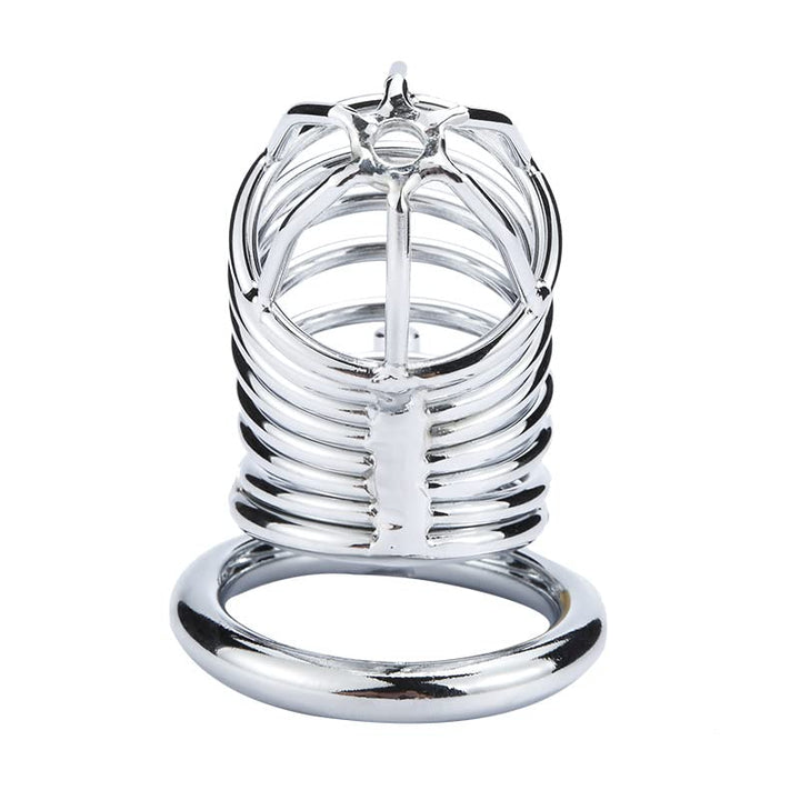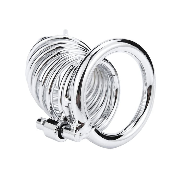 Verstelbare roestvrijstalen mannelijke kuisheidskooi: Zwaar metaal, vergrendelbaar hol ontwerp. Knijpt tijdens erectie voor intense erogene sensatie.